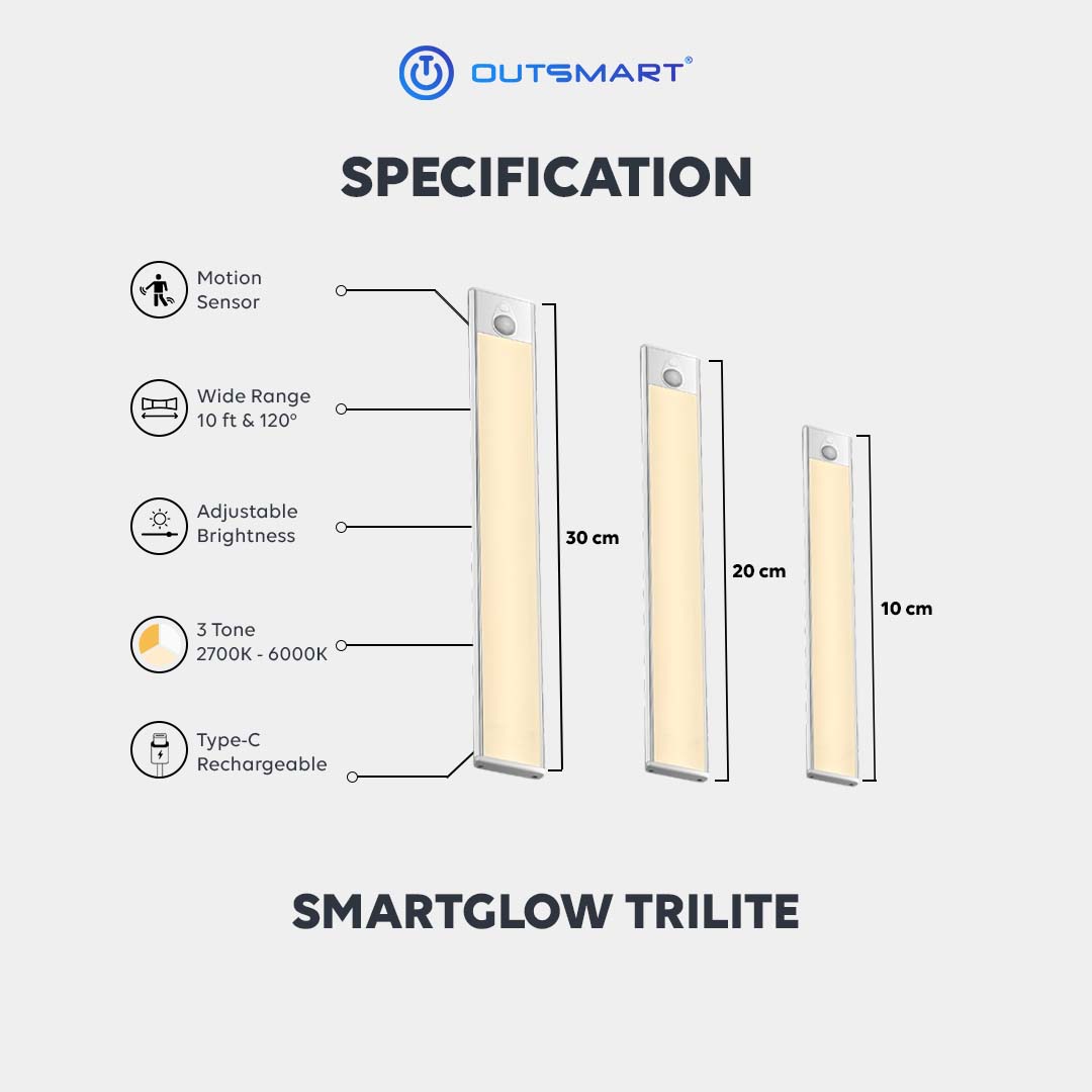 The SmartGlow TriLite is designed with a wide 120-degree sensing angle, ensuring broad coverage for motion detection. This means the light will easily detect movement within a wide area, providing reliable illumination in places like hallways, walkways, or wardrobes.